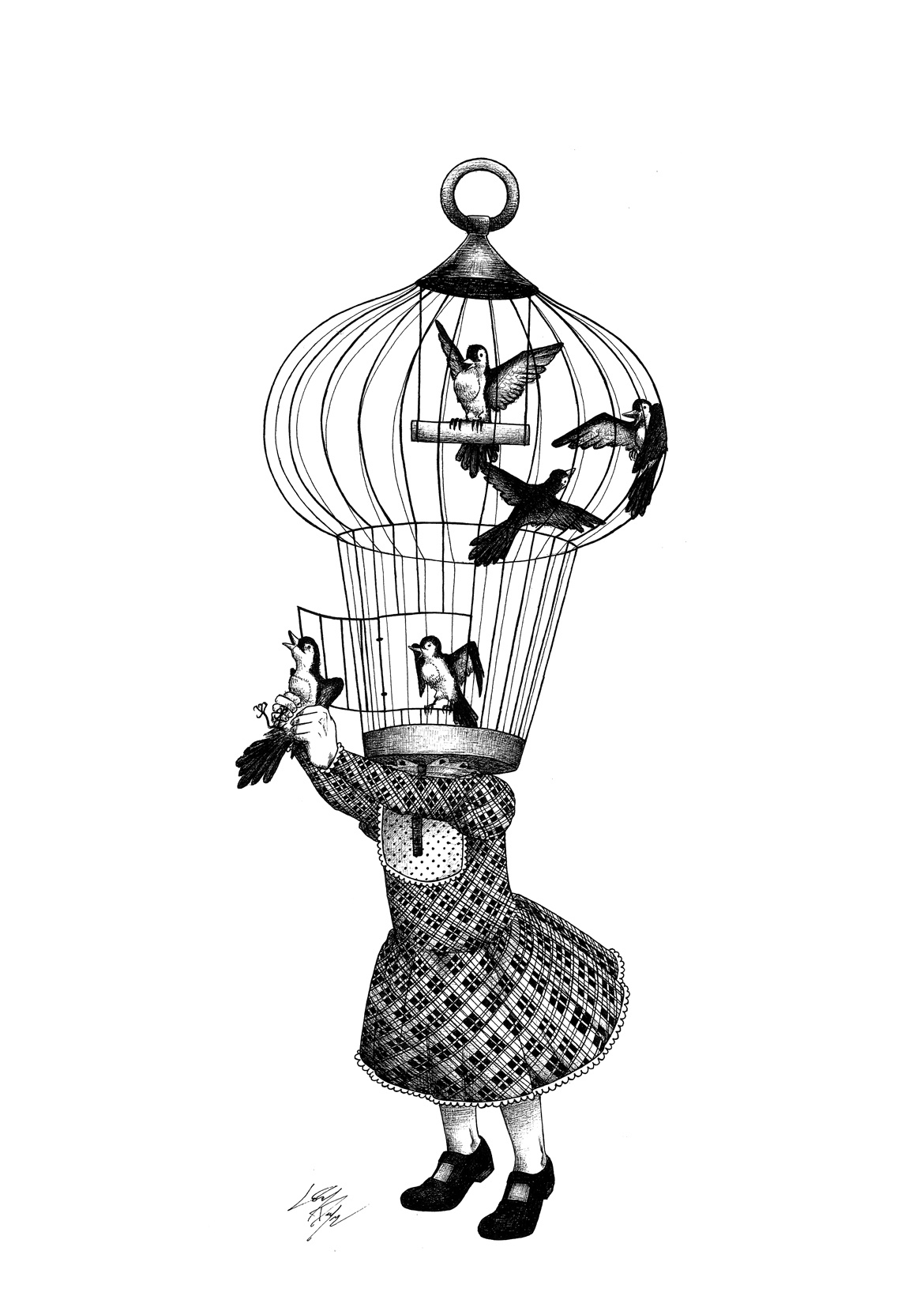 Ho creato questo disegni ormai quattro anni fa, pensando al progressivo isolamento dei contatti umani, quando la ricerca di interazione e di contatto sociale era al massimo, quando si cercava di partecipare a più eventi possibili, di essere insieme a più persone possibile, di condividere un’esperienza fisica su ogni piattaforma social possibile: la risultante di tutto questo contatto era, per contrasto, un grande grido di solitudine, di isolamento nelle proprie bolle personali e di paura dell’alienamento.